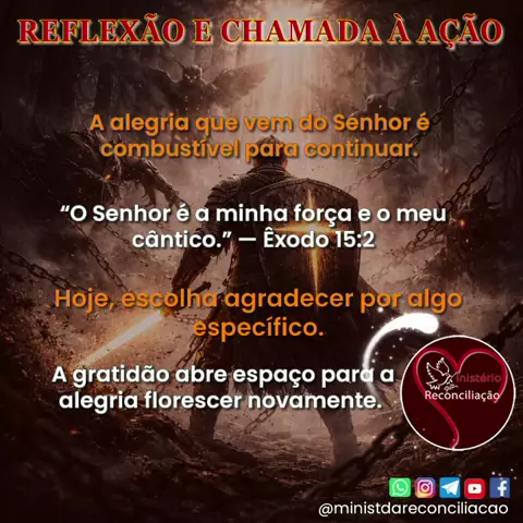 🙏✨ Deus Hoje — Ministério da Reconciliação 📜Reflexão Você pode estar cansado… Mas a alegria do Senhor ainda é a sua força. 💛🔥 ➡️ Acompanhe o Devocional diário completo nos canais: Telegram: https://t.me/ministdareconciliacao Whatsapp: https://marsiteshost.com.br/CanalMinisterioDaReconciliacao ↘️➡️ Observação: seu número de telefone é confidencial. @ministdareconciliacao #DeusHoje # #AlegriaDoSenhor #ForcaEspiritual #RecomecoComDeus #FeQueFortalece