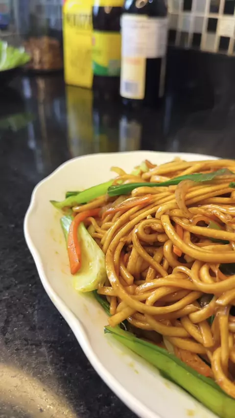 Yakisoba chinês 炒面 (Chǎomiàn) a definição de macarrão frito, onde a principal diferença está no molho Ingredientes: cebola, cenoura, bok-choy (acelga chinesa), cebolinha, molho de ostra, shoyu, sal, açúcar, ajinomoto, ovos e carne de patinho. #fyp #fy #reels #Comida #Receita
