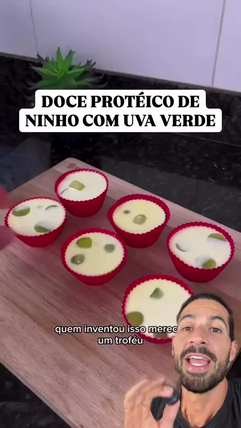 Ingredientes: 100g Leite em pó desnatado 100ml de água 1 gelatina zero incolor 150g de uva verde 1 dose de whey de baunilha 😍 #fitness #receitafit #emagrecer #dieta