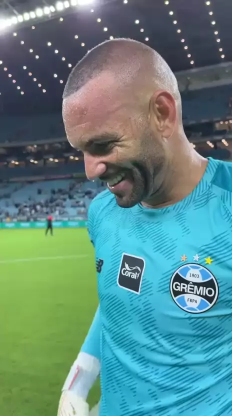 VITÓRIA PELO MARLON! 🇪🇪 Weverton fez questão de deixar um recado especial pro nosso lateral-esquerdo. Estamos todos juntos neste momento! 💙 #GRExVIT #Brasileirão2026