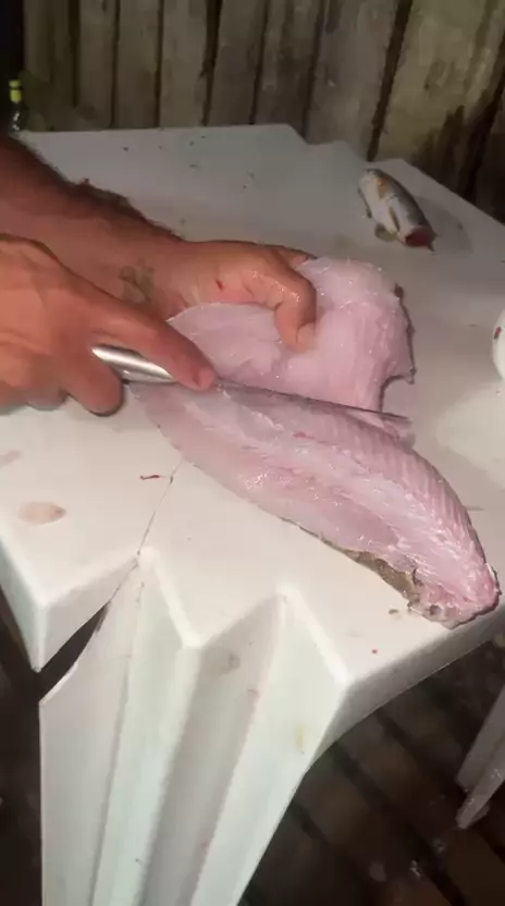 tirando o filé de aruana