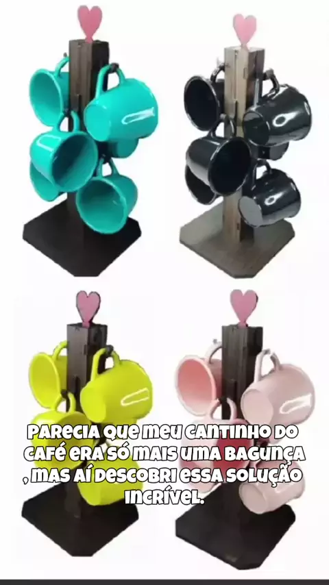 Transforme seu cantinho do café com esse suporte e 6 xícaras coloridas cantinhodocafé organizaçãodecasa xícarasacrílico caféemcasa decoraçãoprática