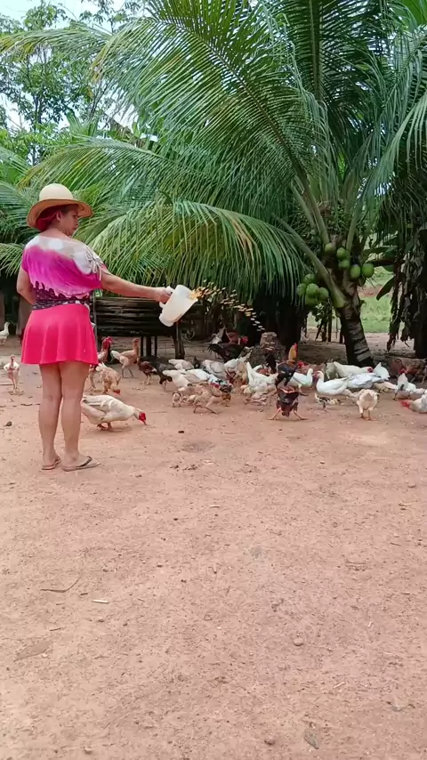 chegou a hora de colocar a comida das galinha 🐔