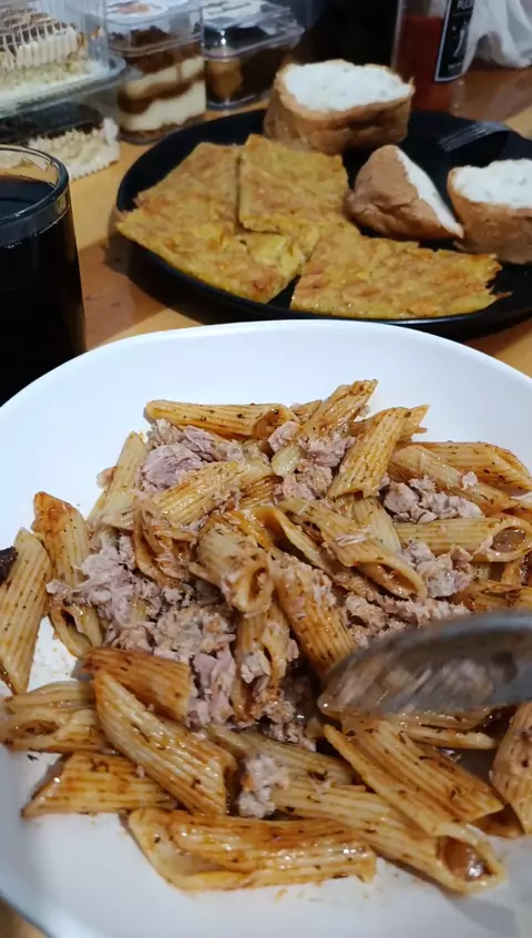 Almoço de hoje, Macarrão com atum, batata rosti e turşu (conserva de repolho, cenoura, e pigles... #gratidão #Comida #videosKwai #viraliza #viral