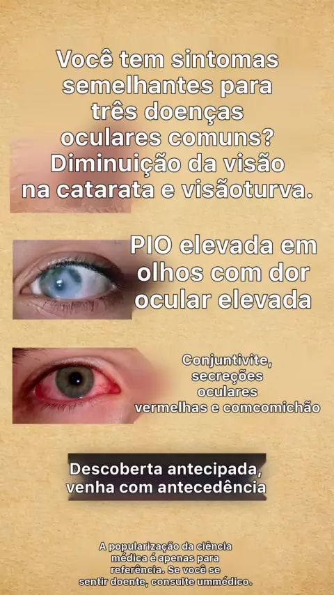 Você tem sintomas semelhantes para as três doenças oculares comuns? # Catarata # Glaucoma # Conjuntivite