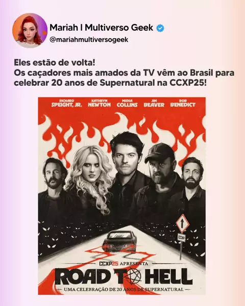 Os portões do inferno se abriram e trouxeram ELES! Jensen Ackles, Jared Padalecki, Misha Collins e Mark Sheppard estão CONFIRMADOS na CCXP25 para celebrar os 20 ANOS de Supernatural! E o melhor: eles ficam os 4 DIAS do evento! Já pode preparar o sal grosso, a jaqueta de couro e o coração porque essa reunião promete ser ÉPICA! Será que o Misha solta algum spoiler de The Boys também? A gente vai estar de olho... #supernaturalnaccxp #spnfamily #ccxp25 #winchesternaccxp #mishaemtheboys
