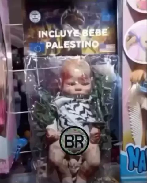 Boneca de bebê palestino, aparentemente sendo fabricada em Israel.