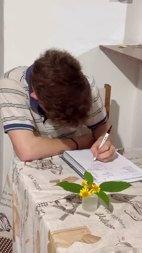 Fui mostrar a conta que meu irmão Antônio Marcos estava fazendo e as flores que ele me deu e deixei o leite cair no fogão que raiva kkk #rotina #familia #matematica #irmão #humor