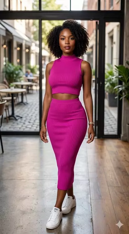 conjunto feminino canelado 2 peça midi gola alta saia +cropped.