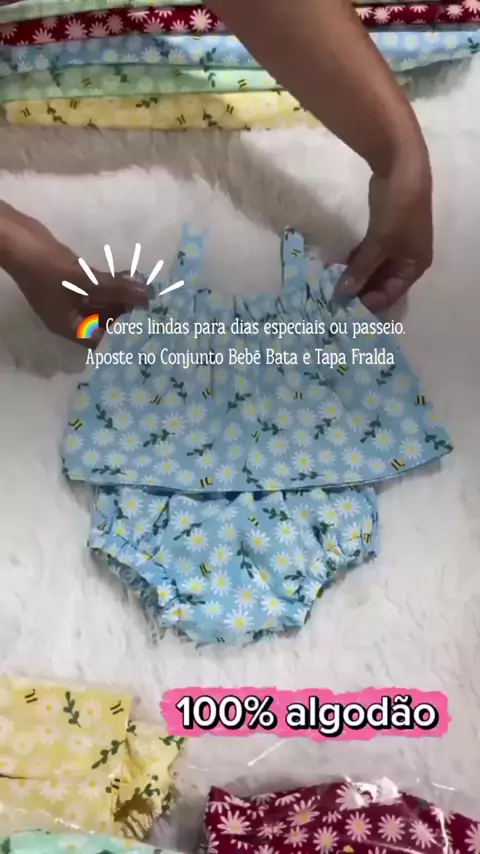 Garanta o Conjunto Bebê Bata e Tapa Fralda Tricoline 100% Algodão. link nos comentários 👍 #BebêConfortável #RoupinhaDeBebê #CompreAgora #AchadinhosInfantis #ModaBebê
