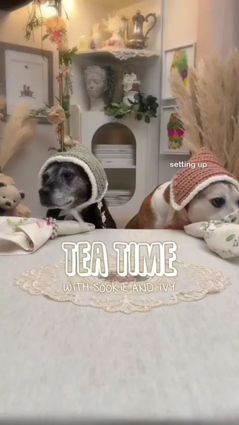 Você viria para esta festa do chá? ♀ ️ ✨ neste vídeo, cada um tem um mini sanduíche de pepino (manteiga), um mini cupcake caseiro com iogurte e xilitol de cobertura de manteiga de amendoim natural - extremamente tóxico), um morango, uma pequena fatia de queijo suíço, um par de mirtilos e fatias de banana, e um sabor de chá simples de dente-de-leão # crochet # crochetersof # dogsof # dogmom # crochettok # ク # seniordog # teapartydogs # funnydogs