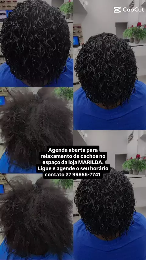 o antes e o depois do cabelo feito relaxamento de cachos. ligue e a gente o seu horário no espaço da loja Marilda cosméticos com a cabeleireira Evelyn. contato 2799865-7741