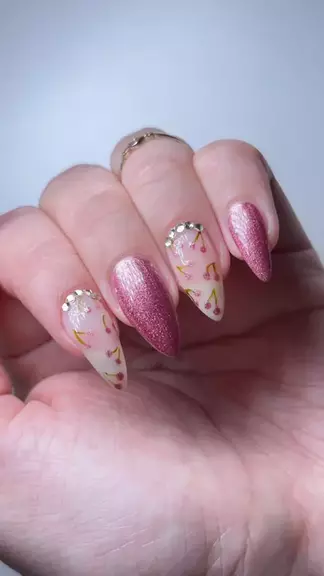 Unhas decoradas de cereja! 🍒 Me conta nos comentários se você usaria essa esmaltação? 😍💖 #Unhas #UnhasLindas #unhasdecoradas #unha