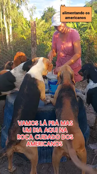 alimentando os cachorros 🐕 americanos #roça #animais #criacao #cachorro #americano