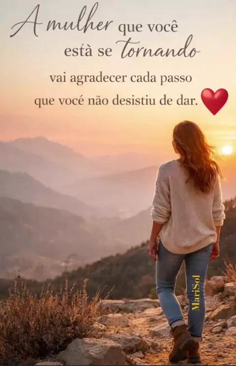 A Mulher que Você está se Tornando vai Agradecer Cada Passo que Você Não Desistiu de Dar.🙌 MariSol🌞❤️