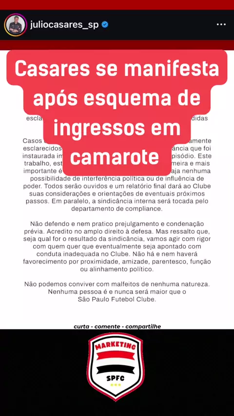 Perfil oficial sobre São Paulo Futebol Clube linktr.ee/marketingSPFC