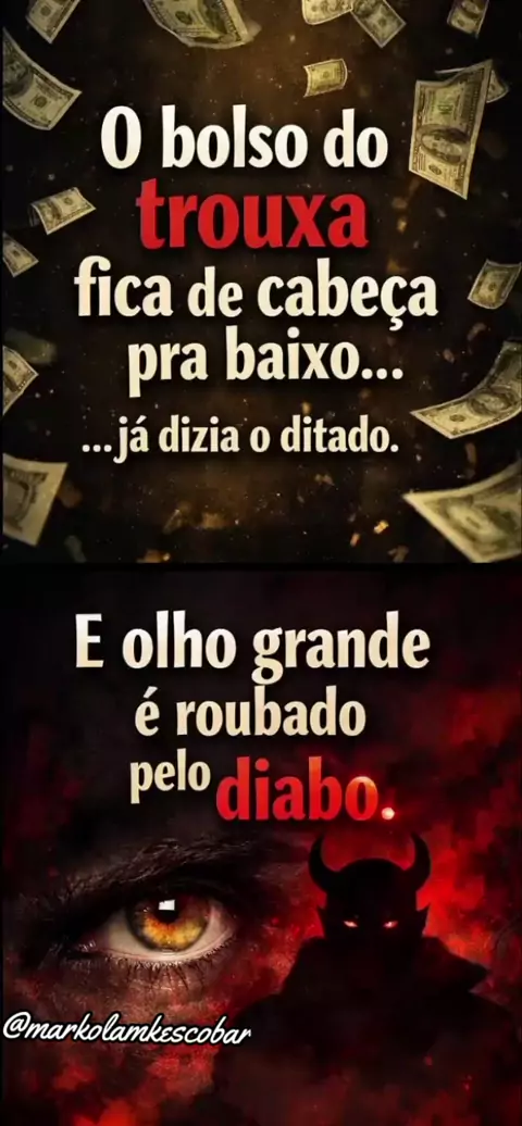 O bolso do trouxa fica de cabeça pra baixo já dizia o ditado... E olho grande é roubado pelo diabo. Quem entendeu, entendeu. 👀🔥 #FrasesFortes #Reflexão #VerdadesDaVida #PraQuemSabe #KwaiBrasil