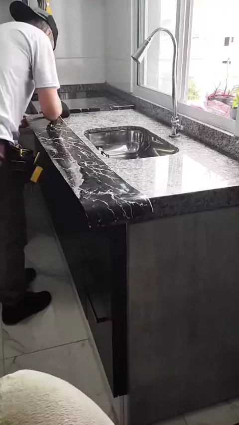 Papel De Parede Adesivo Para Cozinha Marmore Brilhante 3m x 60cm e 5m x 45cm Resistente Água