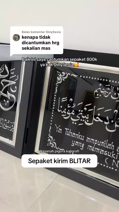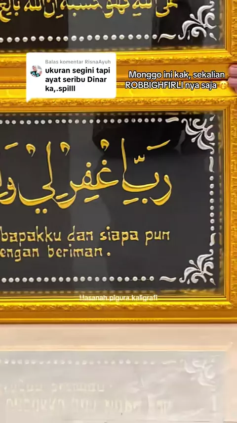 Membalas @RisnaAyuh KALIGRAFI AYAT SERIBU DINAR DAN KALIGRAFI ROBBIGHFIRLI 95*35 meluncur ke tuannya.#kaligrafiayatseribudinar#ayatseribudinar#kaligrafirobbifirli#robbighfirli#hasanahpigurakaligrafi
