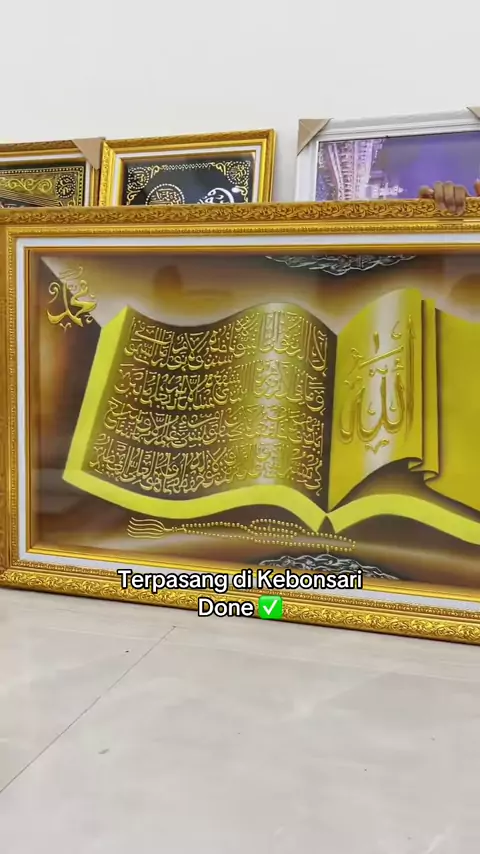 Membalas @bintang nya virgo KALIGRAFI AYAT SERIBU DINAR 50*90 emas bermotifkan kitab terbuka.#ayatseribudinar#kaligrafiayatseribudinar#ustadzadihidayat#hasanahpigurakaligrafi#trending