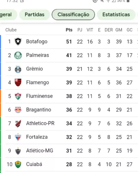tabela do campeonato Brasileiro 2023