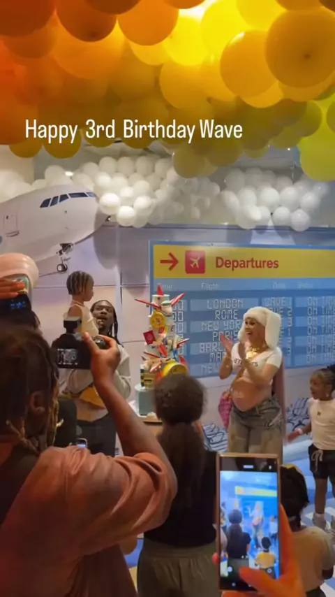 Cardi B with friends and family singing happy birthday to Wave at his 3rd bday party. 🥳🥳#cardi#cardib#wave#bardigang###viral