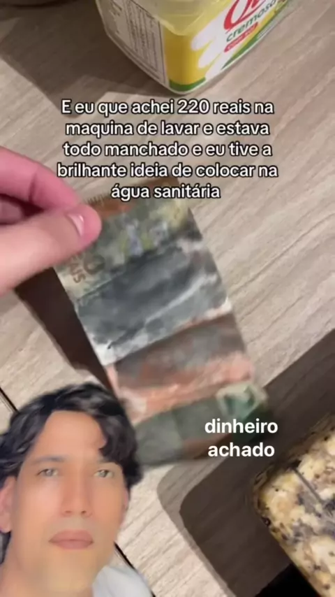 O dinheiro lavado com água sanitária 💵#morriaenaosabia #dinheiro #reação