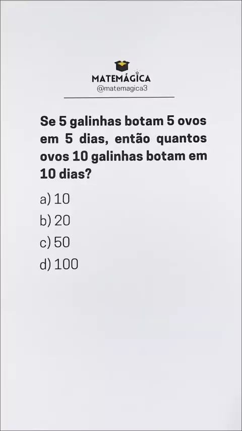 Quantos ovos 10 galinhas botam em 10 dias❓ Matemática básica. #matematica #matematicabasica #concurso #vestibular