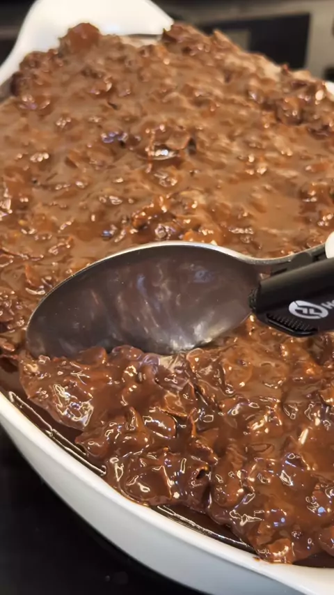 Bolo de Chocolate Crocante (Crunch Cake) Ingredientes: 2 ovos 1/2 xícara de açúcar 50ml de óleo 3 col. de sopa de chocolate em pó 50% 1/2 xícara de água morna 1 xícara de farinha de trigo 1 colher de chá de fermento em pó 1 colher de café de bicarbonato de sódio Calda: 1 xícara de leite 1 colher de sopa de achocolatado em pó Ganache: 100g de chocolate meio amargo 100g de creme de leite Cobertura: 200g de chocolate meio amargo 2 col. de sopa de creme de ovomaltine 3/4 de xíc. de