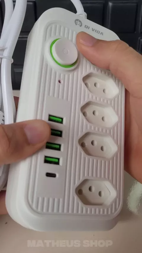 Extensão Filtro De Linha Segurança 5 Tomadas 4 Usb E Usb C #Shop