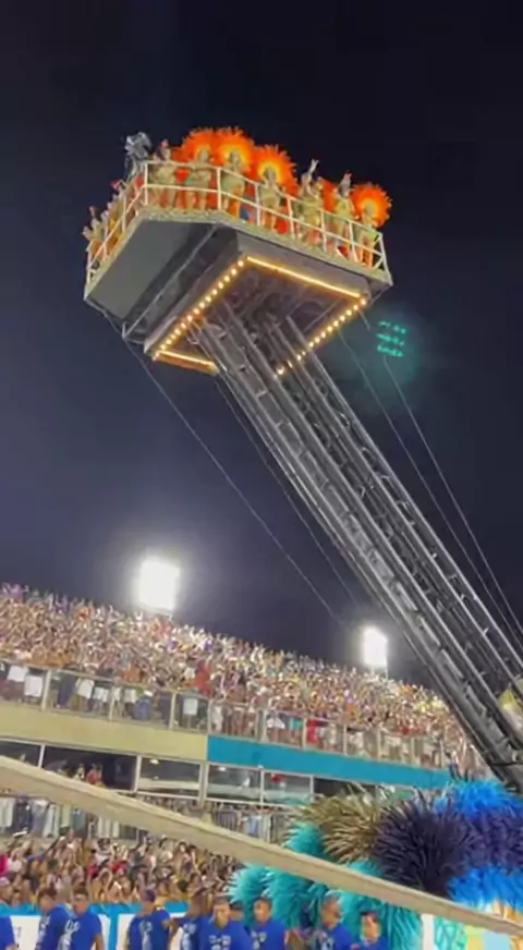 O elevador de fibra rachou e despencou com 40 pessoas na Sapucaí! Pânico nas alturas 🏗️💥 #Sapucai #Acidente #realmeC85Carnaval #CarnaKwai