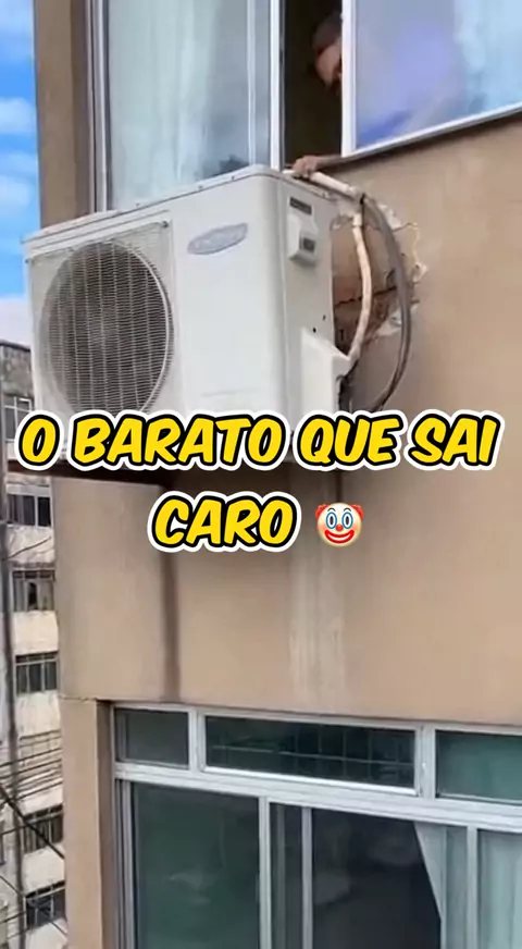 NÃO QUIS COMPRAR O SUPORTE DE INOX E O AR CAIU! ❄️🏢💥 #Brasil #ArCondicionado #BemFeito #Prejuizo
