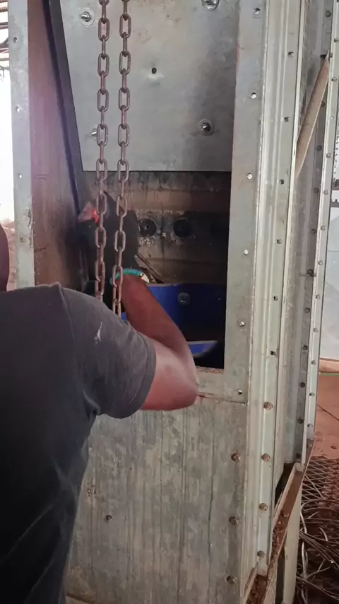 doando giro no elevador para colocar última caneca da emenda que ficou para trás