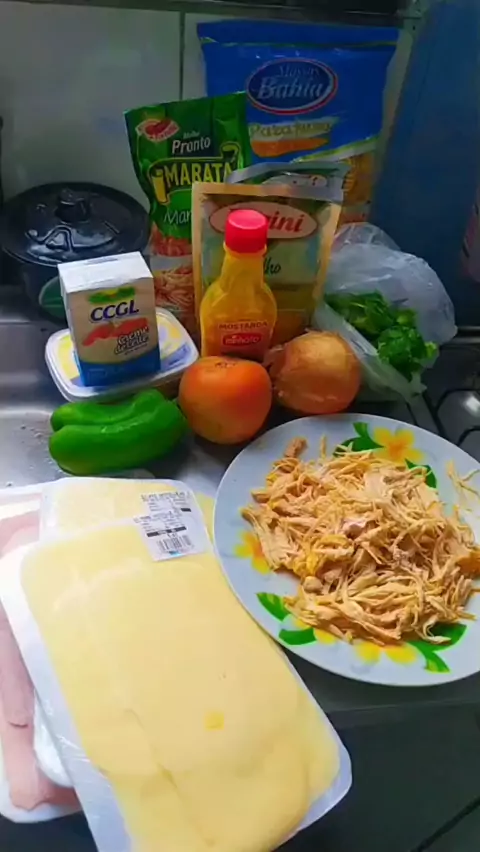 macarrão parafuso de frango & presunto ao forno #macarrão #Receita #Comida