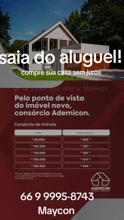 Consultor de negócios @ademicon Te ajudo a comprar sua casa ou carro sem pagar juros! chama no WhatsApp 66 99995-8743 faça sua consultoria gratuita. Pva- MT/BR