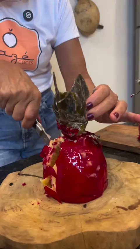 E o Abacaxi cristalizado inteiro do Amor ficou lindo e delicioso. Me conta aqui se você comeria 1 desse sozinho(a)? 😂🍍♥️ #mazedoces #historiasdamaze #abacaxidoamor #abacaxicristalizado