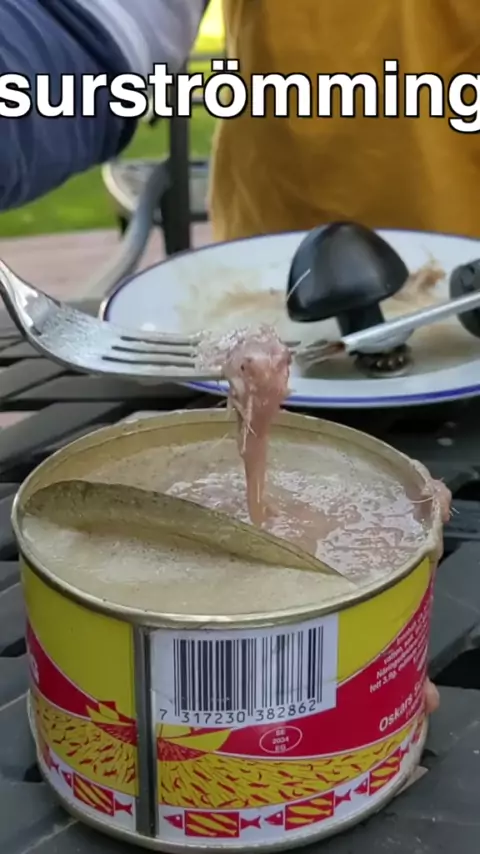 Experimente o surströmming, a comida mais fedida do mundo. # brincadeira # desafio # comida # surstrommingchallenge Obrigado por ajudar!