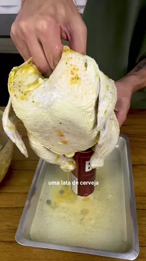 Frango assado com cerveja 😋😋😋 #receitas #frangoassado #receitasfaceis