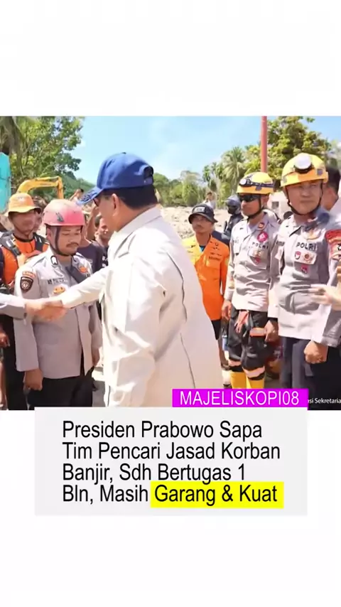 Presiden Prabowo Subianto menghentikan mobil kepresidenan saat menuju jembatan bailey Sungai Garoga, Batang Toru, Tapanuli Selatan, untuk menyapa polisi yang mencari jasad korban banjir bandang dan longsor. Bapak Presiden turun dari kendaraan dan memberi semangat kepada personel yang telah bekerja berminggu-minggu di lapangan. Salah satu polisi melaporkan pencarian dilakukan hingga 22 hari di Matauli dan 24 hari di Sibolga. Kunjungan ini dilakukan untuk meninjau langsung pemulihan pascabencana,...
