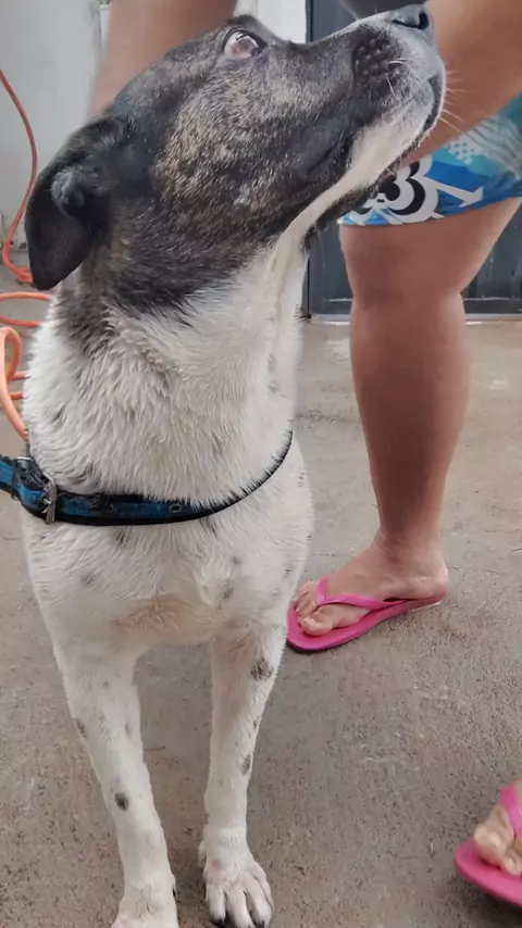 Enxaguando meu cachorro Vegas após esperar os 10 minutos indicados para o Xampu do tratamento dele fazer Efeito. #FelizPascoa #MeuDog #2025internationalshortvideocompetition #cachorro #pet