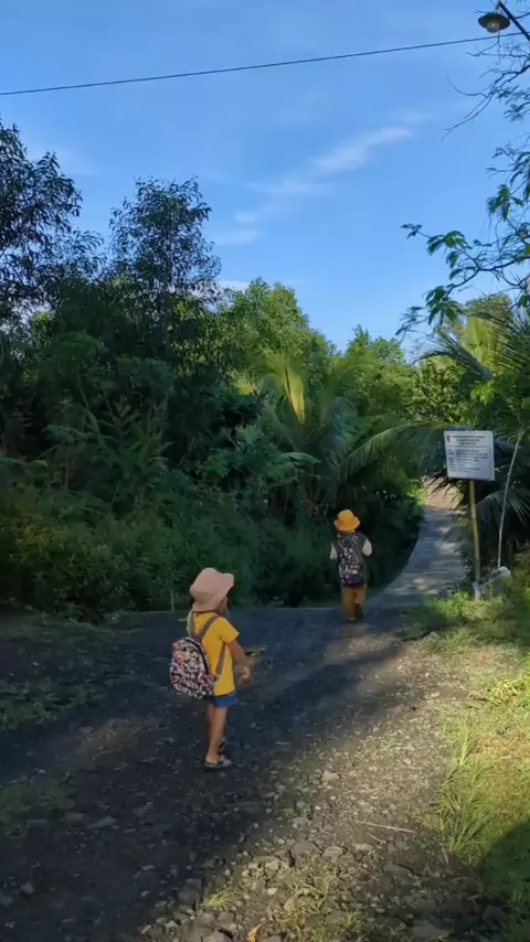 jalan kaki antar sekolahan sekalian biar mamaknya gerak 🤭. tenang Bun ga tiap hari aku antar anak jalan kaki ko, hanya s sekali aja kalo pas anak-anak udah siap sedari pagi 🤭 #pedesaan #irt #fyp #Sekolah