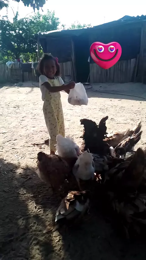 Mi niña alimentando los animalitos