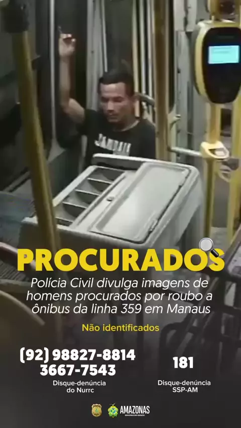*🚹A #policia PolĂ­cia Civil do #Amazonas (#PC-AM), por meio do NĂșcleo de RepressĂŁo a Roubos no Transporte Coletivo e Rotas do Polo Industrial de Manaus (#Nurrc), reforça a divulgação da imagem de Francisco Batista de Oliveira, conhecido como “Chiquinho”, e mais dois indivĂ­duos, suspeitos de um roubo a um ĂŽnibus da linha 359. O crime foi registrado no dia 14 de setembro deste ano, nas proximidades do Terminal 3, no bairro Cidade Nova, zona norte de Manaus.*