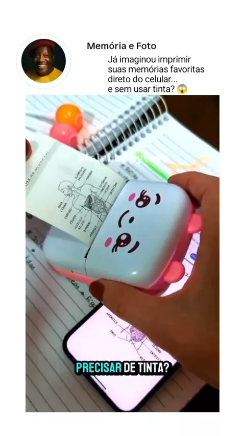 Já imaginou imprimir suas memórias favoritas direto do celular... e sem usar tinta? 😱 Essa mini impressora portátil é perfeita pra quem ama guardar: 📸 Fotos nostálgicas ✍️ Frases marcantes 🧠 Resumos de estudo ou recados do dia a dia Pequena, prática e com bobina térmica (tipo maquininha), ela cabe no bolso e na sua rotina. 👉 Comenta QUERO que eu te mando o link direto! 📌 Salva esse post e compartilha com alguém que também ama eternizar momentos no papel. 🧡 Aqui é assim: a gente vive d