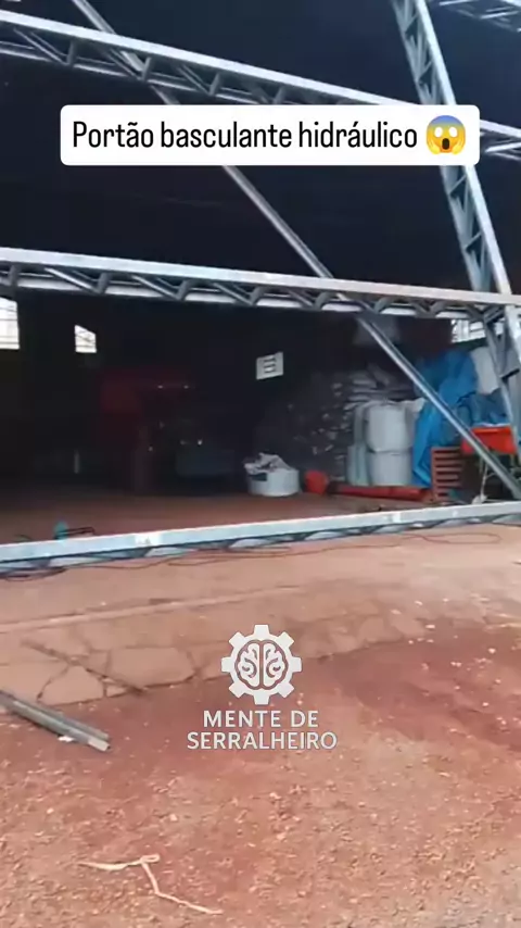 Portão basculante com sistema hidráulico calibrado: válvulas reguladas, cilindros sincronizados e desempenho estável mesmo sob esforço.