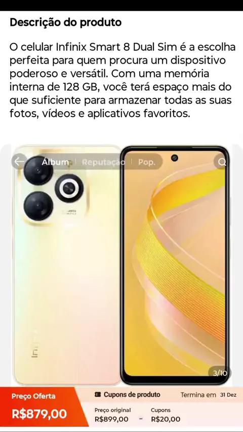 Tá procurando um celular potente, bonito e com ótimo custo-benefício? Conheça o Infinix Smart 8 Dual Chip! Ele vem com 128 GB de memória interna, 4 GB de RAM, processador Unisoc T606 e uma super tela de 6,6" com 90Hz. As câmeras são incríveis: 13 MP traseira e 8 MP frontal, perfeitas pra fotos e vídeos com qualidade. E a bateria? São 5000 mAh pra durar o dia todo! Já vem com Android 13 e leitor digital lateral. Aproveite agora — clique no link e garanta o seu! #FreteGratis #ShopKwai #Kwaishop