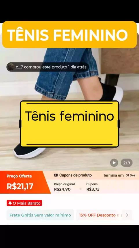 "Você não vai acreditar nesse achado! Tênis estilo Slip On, leve, confortável e perfeito pra treinar ou usar no dia a dia. Design moderno, fácil de calçar, e o melhor: custa menos do que uma pizza! 🤯 Tá passando aqui no carrossel em cima da minha cabeça, então já clica no link e garante o seu antes que acabe! Porque por esse preço... voa mesmo! 👟💨" #ténis #KwaiShop #ShopKwai #kwai