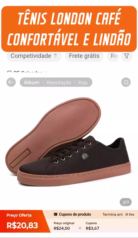 TÊNIS LONDON CAFÉ MAIS CONFORTO E ESTILO PARA OS TEUS PÉS. #Kwaishop #ShopKwai #kwai