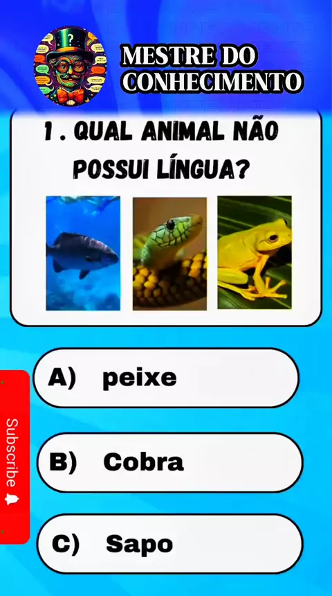 Qual animal não possui língua? #quiz #educação #desafio #perguntaserespostas