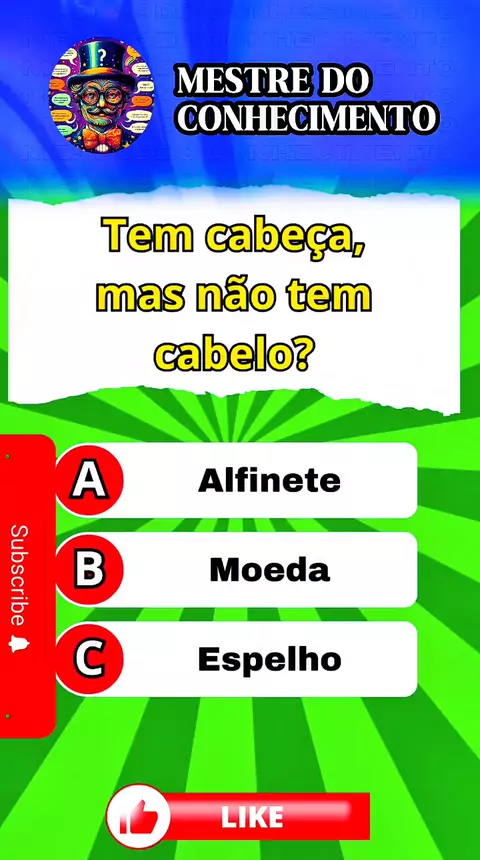 Tem cabeça mas não tem cabelo? #quiz #perguntaserespostas #educação #desafio #oqueéoqueé